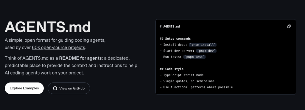 - 베스트 프랙티스 공유: 대규모 오픈소스 프로젝트들의 AGENTS.md 예시가 계속 축적되고 있습니다.