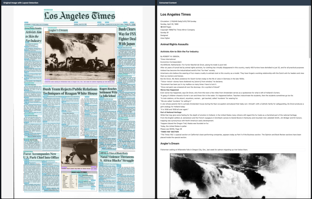 뉴욕 타임스나 LA 타임스와 같은 신문 기사도 다열 레이아웃을 유지하면서 처리할 수 있습니다.